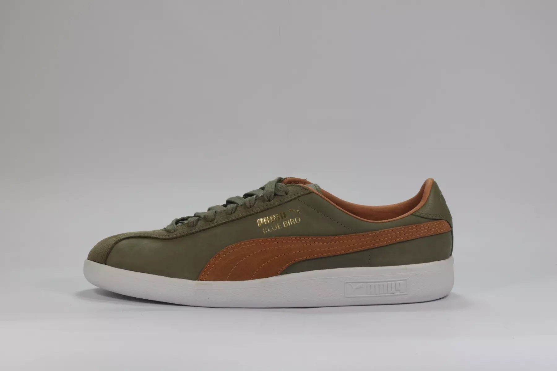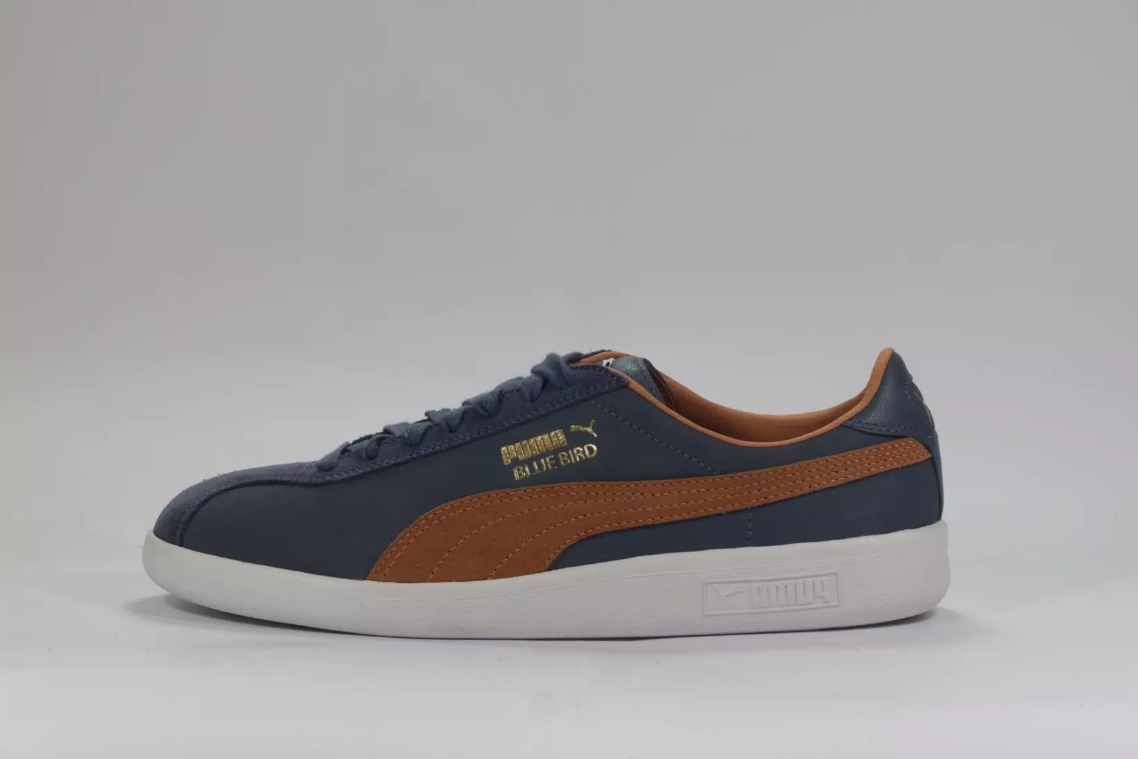 Bluebird in soft, waxed nubuk leather with almond colored formstripe and lining